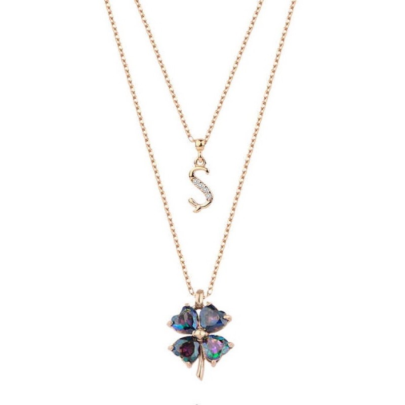 Harfli Mistik Topaz Yonca Rose Renk Gümüş Kolye GMS2052