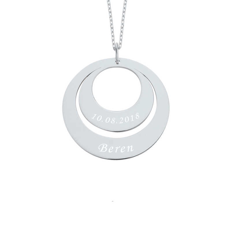 İki İsimli Halka Levha Gümüş Kolye GMS1285