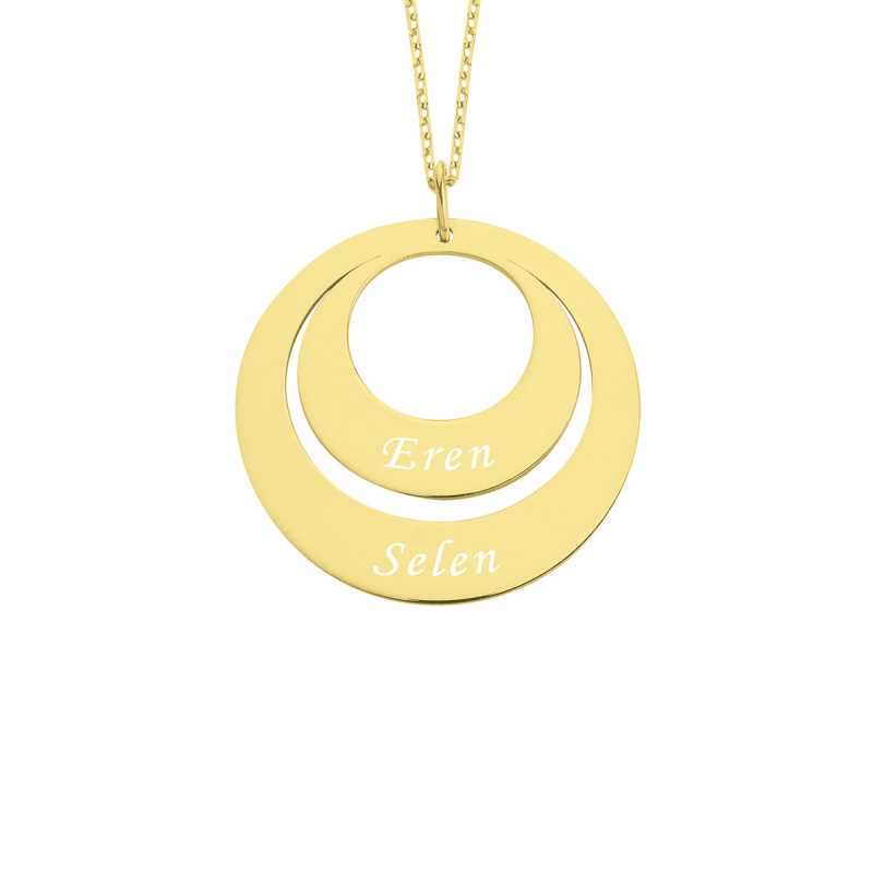 İki İsimli Halka Levha Gümüş Kolye GMS1287