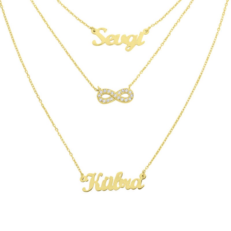 İki İsimli Taşlı Sonsuzluk Gümüş Kolye GMS1296