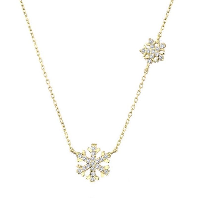 İkili Kar Tanesi Gümüş Sarı Kolye GMS1865