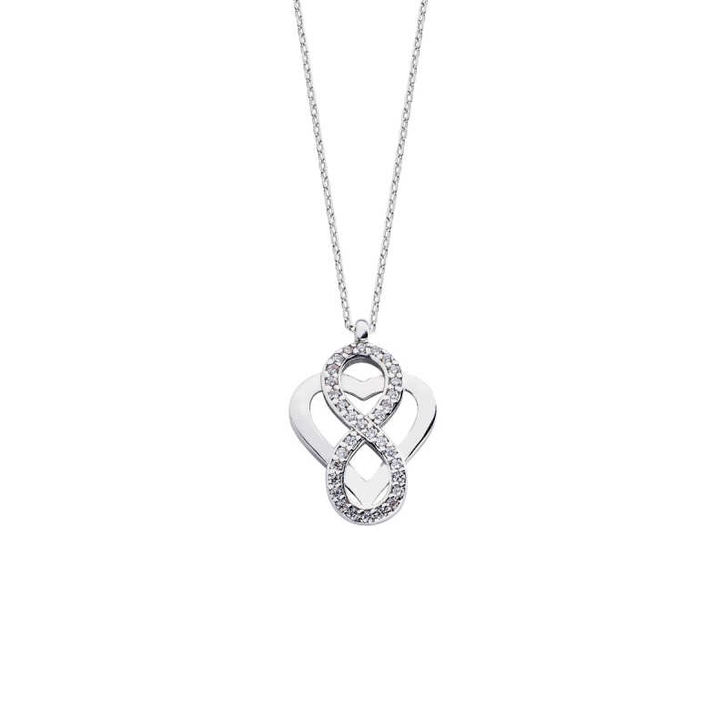 Kalp Motifli Zirkon Taşlı Sonsuzluk Gümüş Kolye GMS1699