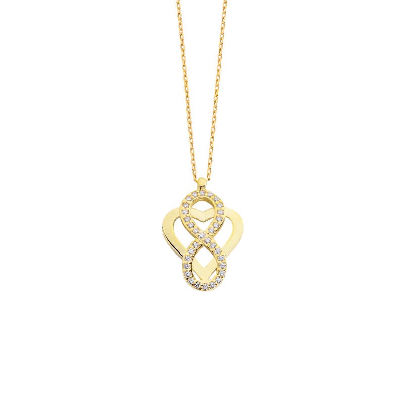 Kalp Motifli Zirkon Taşlı Sonsuzluk Gümüş Kolye GMS1701