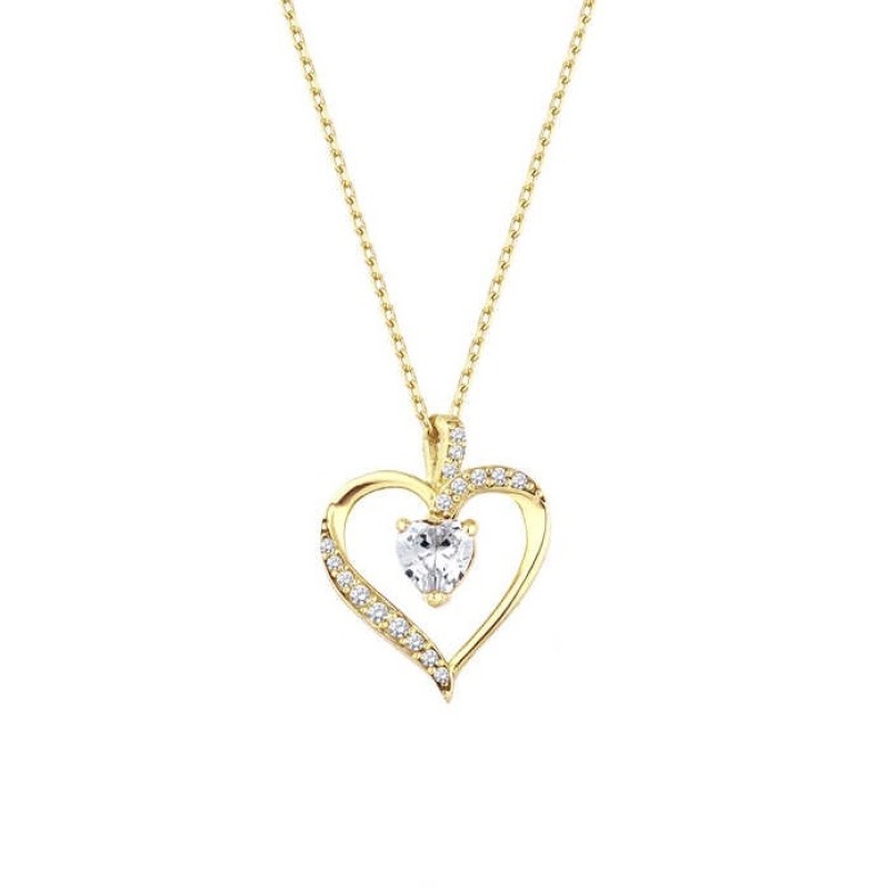 Kalp Taşlı Sarı Renk Gümüş Kolye GMS1947