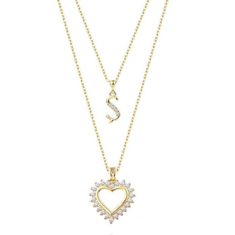 Kalpli Harfli Zirkon Sarı Renk Gümüş Kolye GMS2068