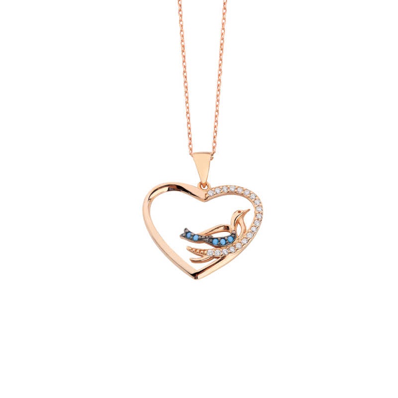 Kalpli Kuşlu Gümüş Kolye GMS1684