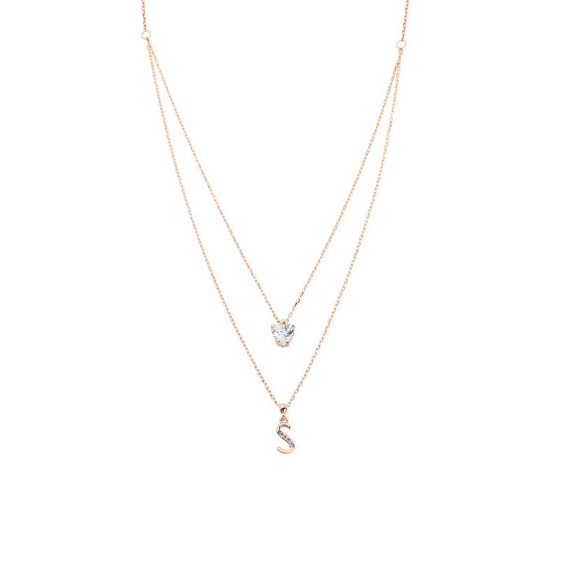 Kalpli Taşlı Çift Zincir Harfli Gümüş Kolye GMS998