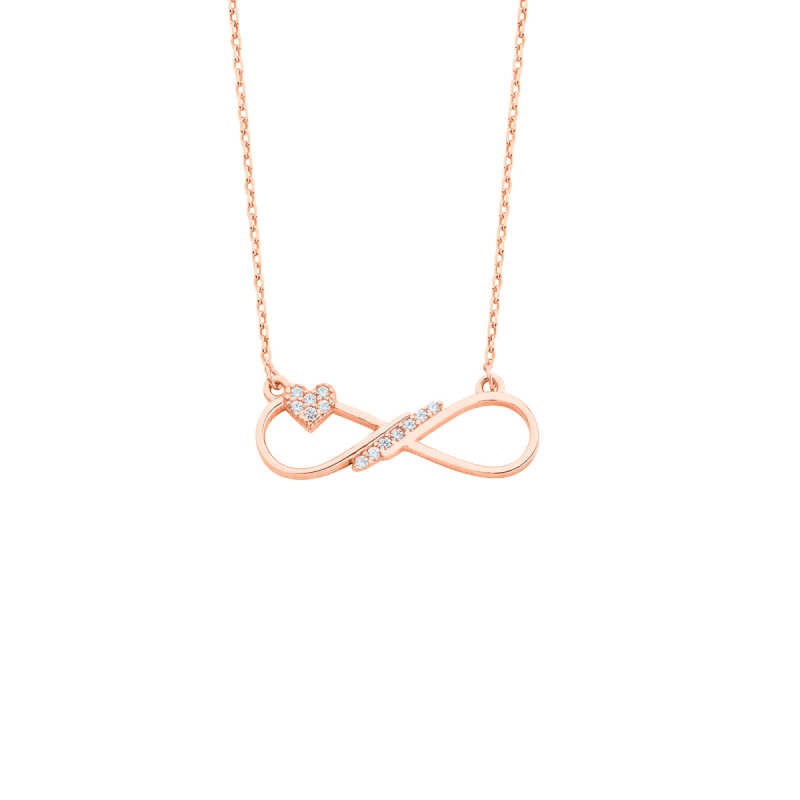 Kalpli Zirkon Taşlı Sonsuzluk Gümüş Kolye GMS1118