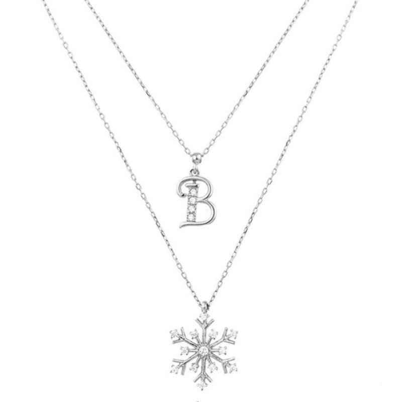 Kar Tanesi Harfli Çift Zincirli Gümüş Beyaz Kolye GMS1872