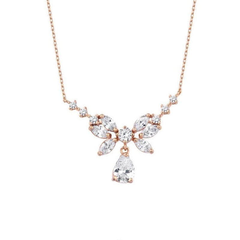 Markiz Taşlı Damla Abiye Rose Renk Gümüş Kolye GMS2028