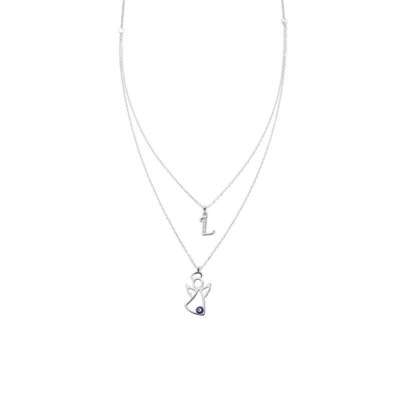 Melek Çift Zincir Harfli Gümüş Kolye GMS1583