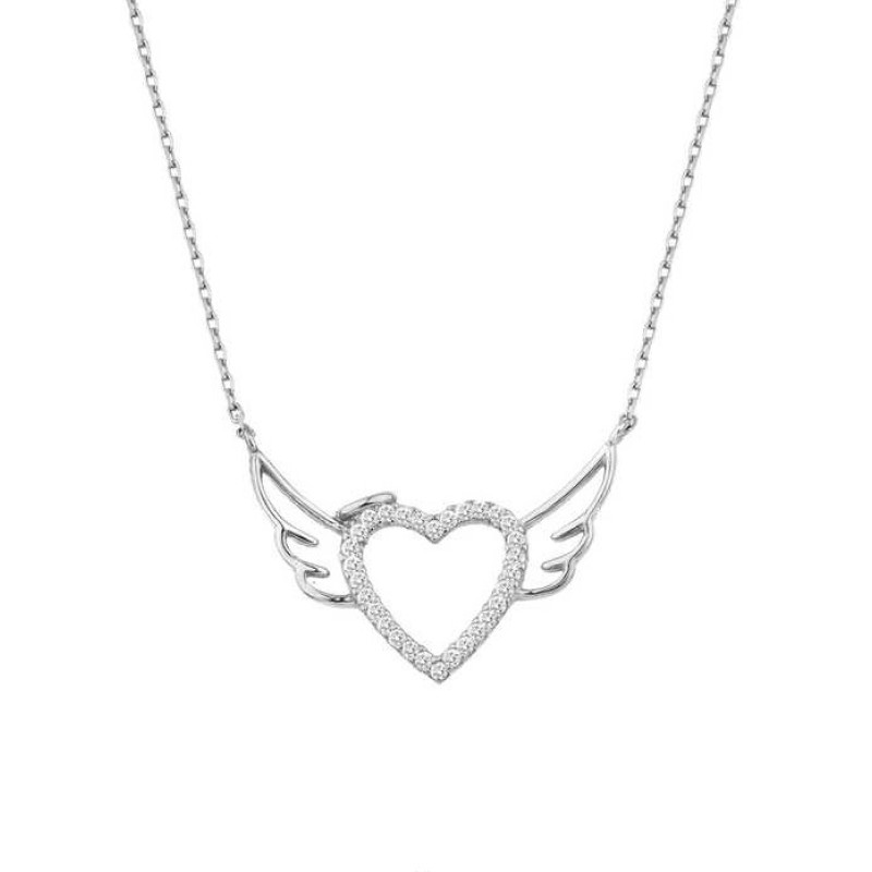 Melek Kanadı Kalpli Gümüş Beyaz Kolye GMS1852