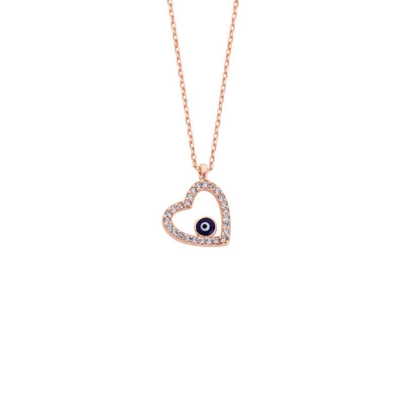Nazarlı Kalpli Gümüş Kolye GMS1143