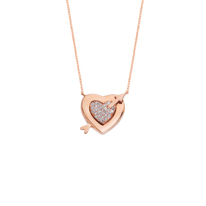 Ok ve Kalp Rose Renk Gümüş Kolye GMS81