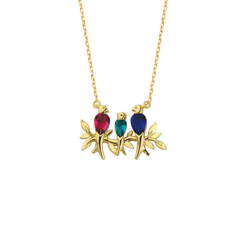 Renkli Taşlı Üçlü Kumru Gümüş Kolye GMS1108