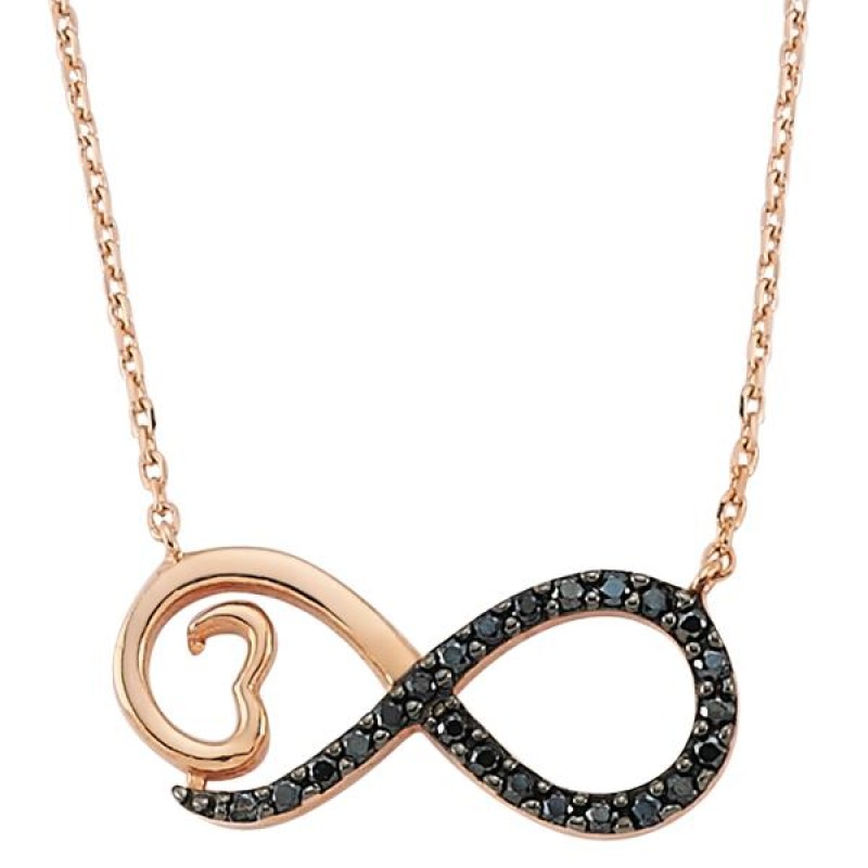 Rose Siyah Taşlı Sonsuzluk Gümüş Kolye GMS07