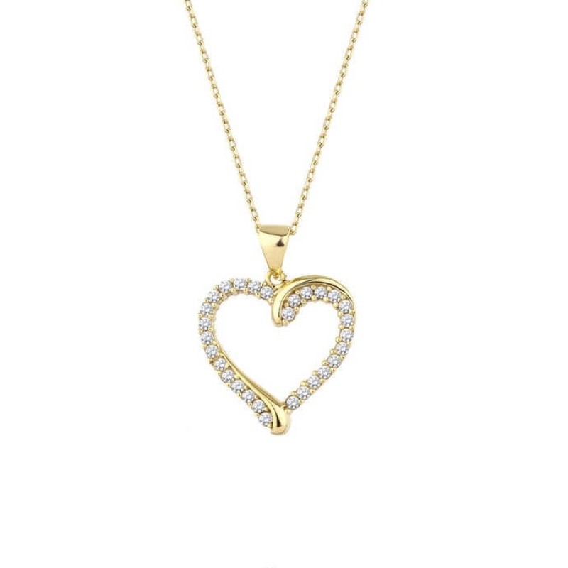 Sıra Taşlı Sarı Renk Kalp Gümüş Kolye GMS1954