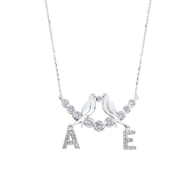 Su Yolu Kuşlu Harfli Gümüş Kolye GMS1738