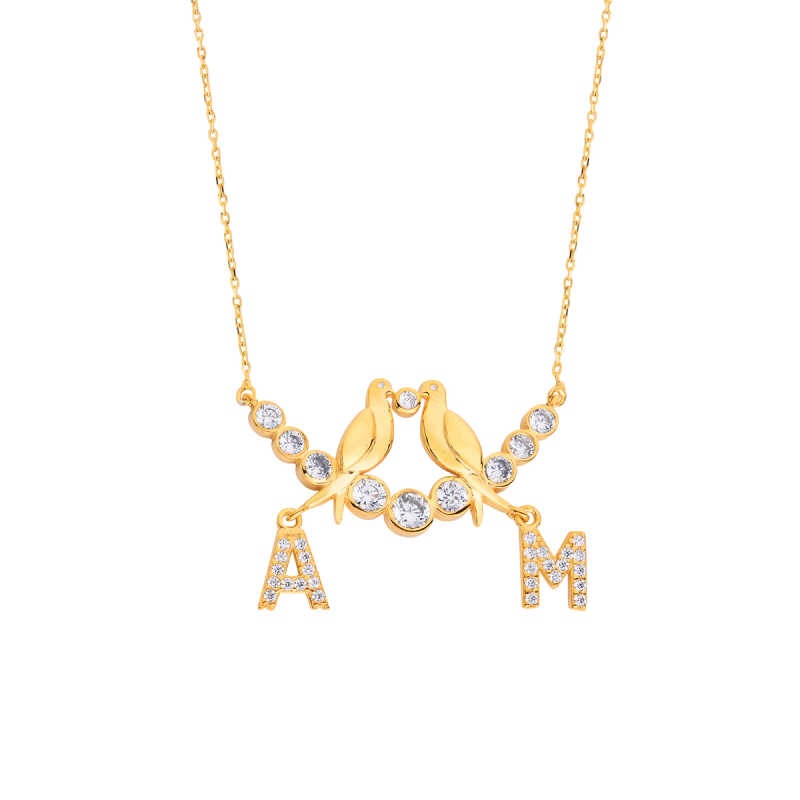 Su Yolu Kuşlu Harfli Gümüş Kolye GMS1739
