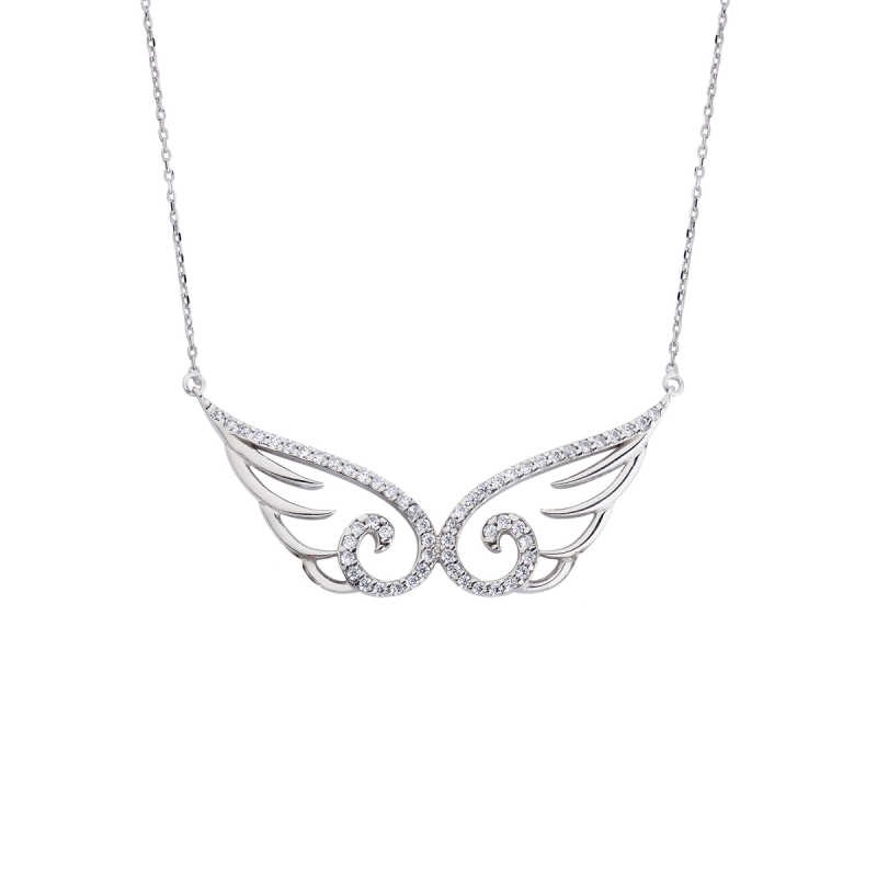 Taşlı Melek Kanadı Gümüş Kolye GMS1555