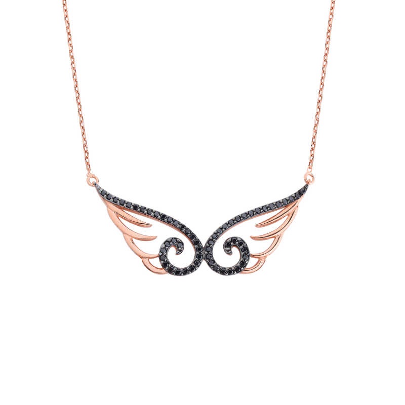 Taşlı Melek Kanadı Gümüş Kolye GMS1556