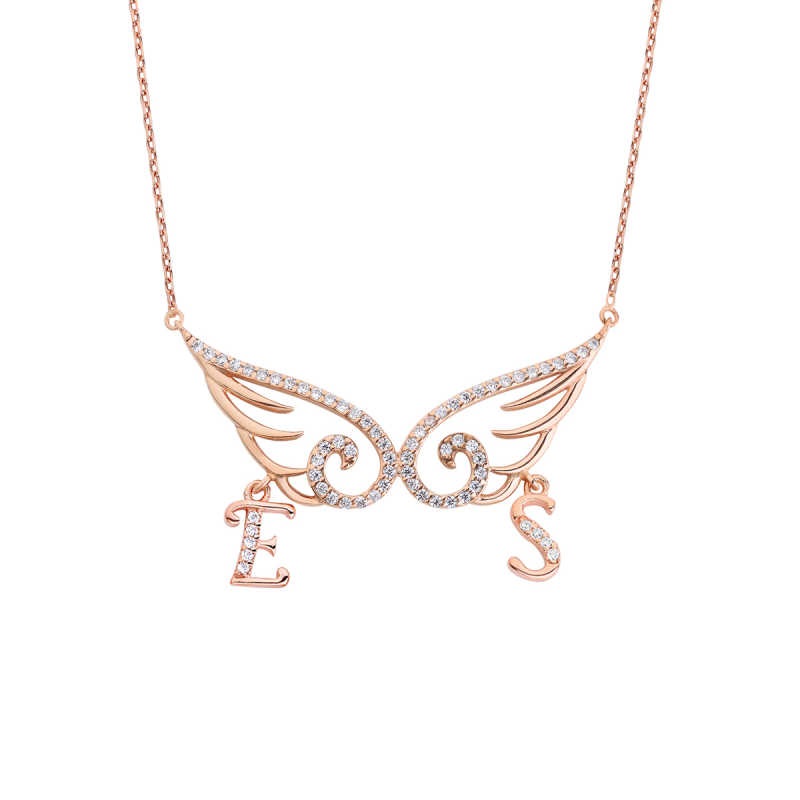 Taşlı Melek Kanadı Harfli Gümüş Kolye GMS1499