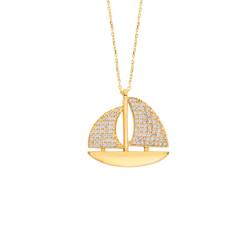 Ufka Yolculuk Yelkenli Altın Rengi Gümüş Kolye GMS112