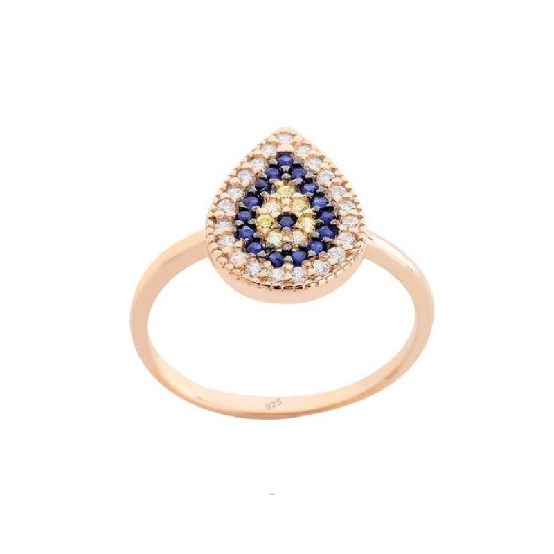 Damla Motifli Nazar Gümüş Rose Yüzük GMS1928