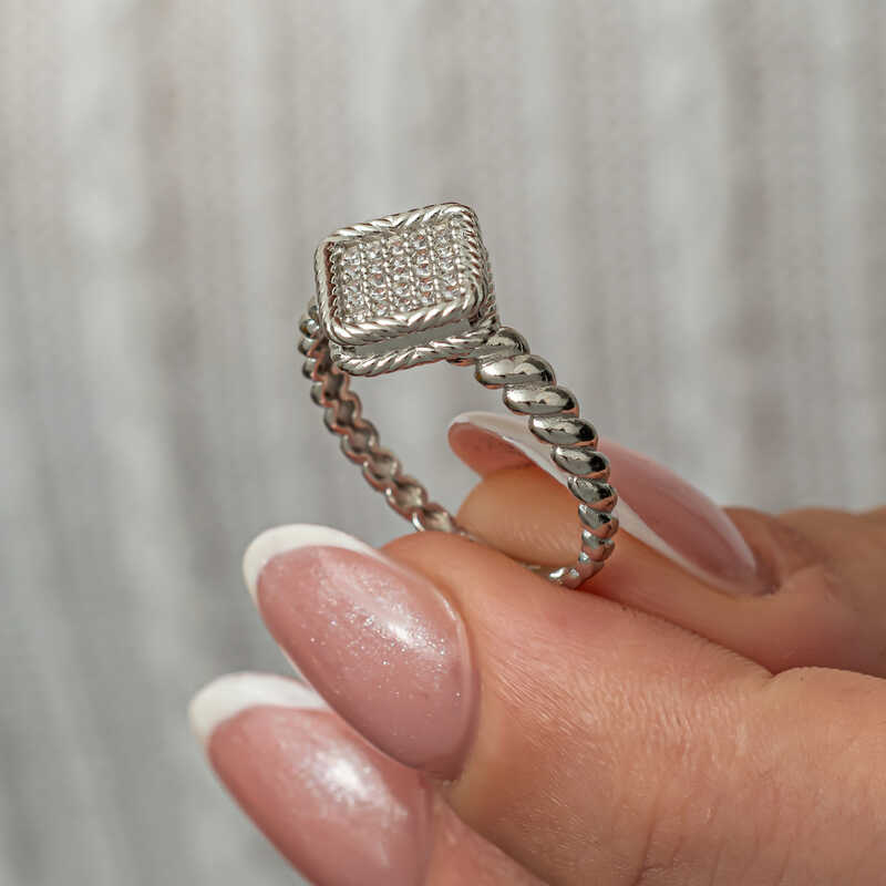 Gümüş Kare Zirkon Taşlı Kadın Yüzük
