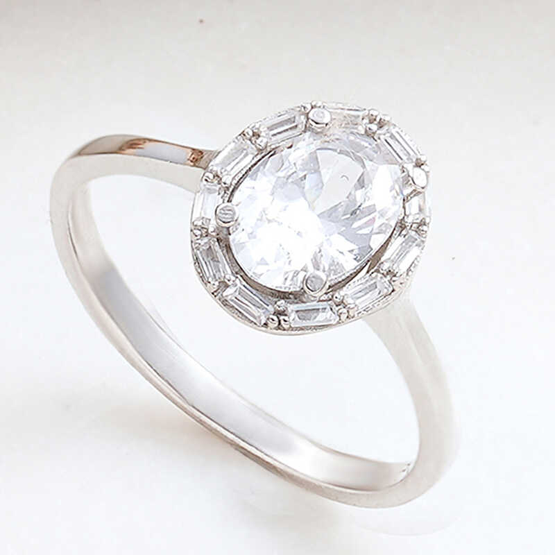 Gümüş Oval Zirkon Taşlı Kadın Yüzük