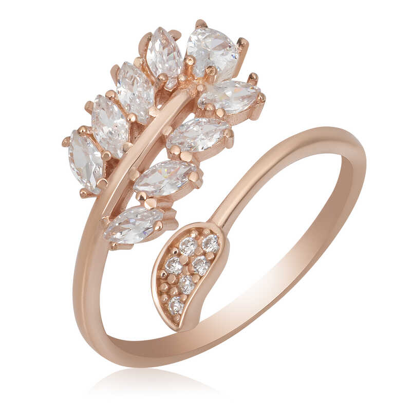 Gümüş Rose Ayarlanabilir Beyaz Taşlı Yaprak Kadın Yüzük