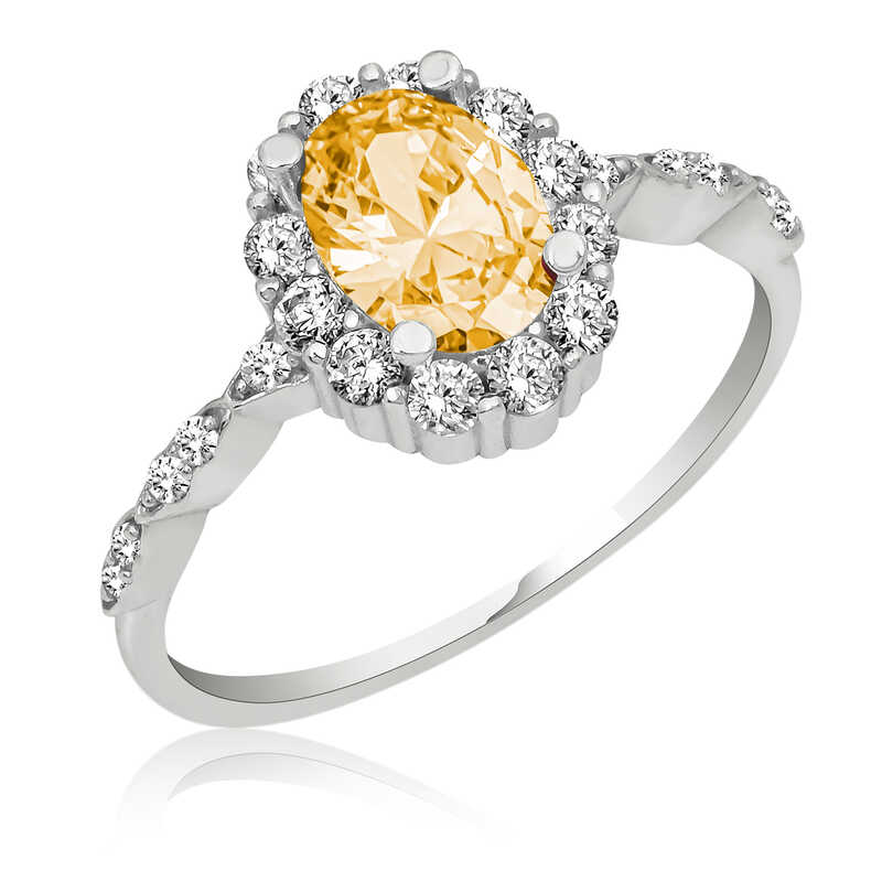 Gümüş Sarı Oval Taşlı Kadın Yüzük