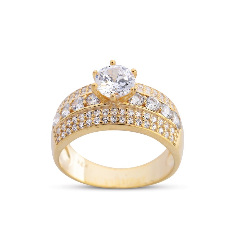 Kanal Tektaş Altın Rengi Gümüş Yüzük GMS195