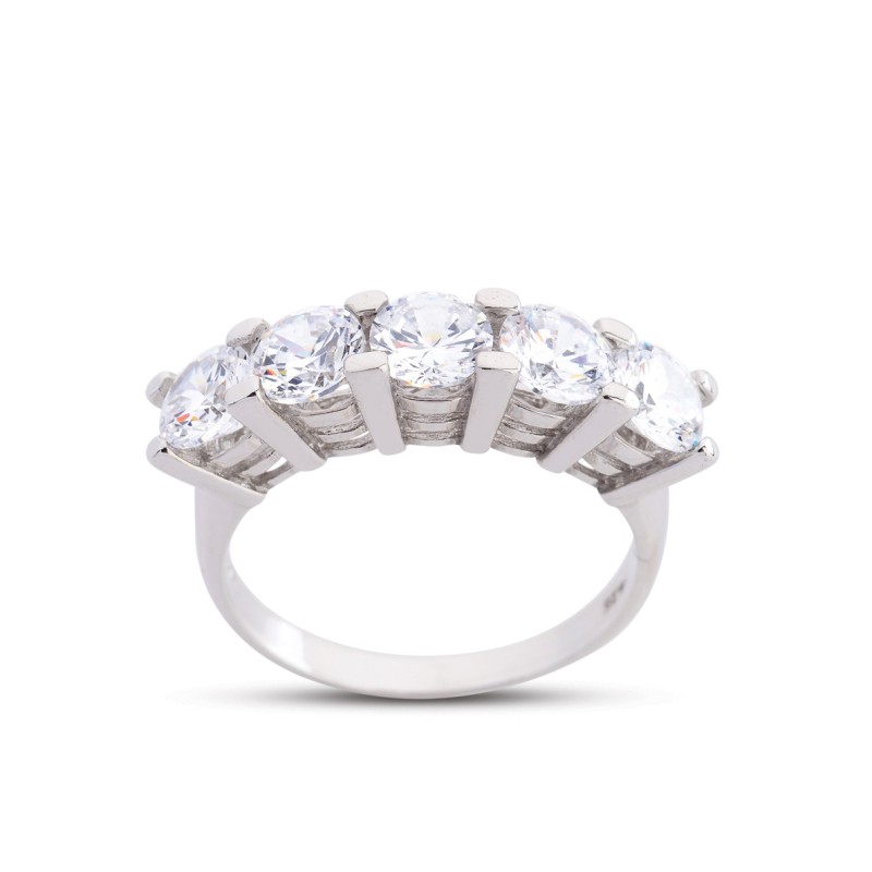 Pırlanta Montür Büyük Boy Beyaz Renk Beştaş Gümüş Yüzük GMS216