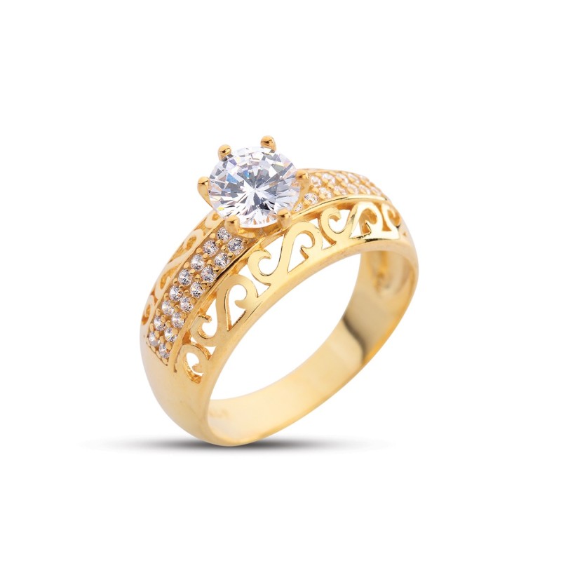 S Motifli Tektaş Altın Rengi Gümüş Yüzük GMS226