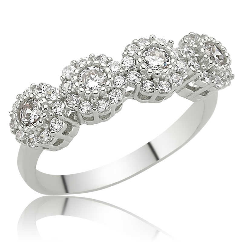 Gümüş Çiçekli 5 Taş Bayan Yüzük