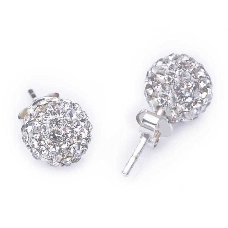 Gümüş Beyaz Taşlı Top Çivili Küpe