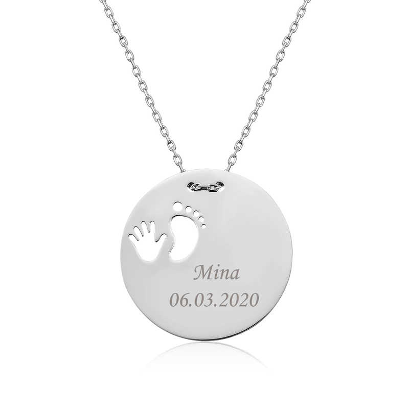Gümüş El Ayak İzi Yeni Doğan Kolye