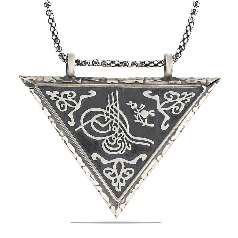 Gümüş Üçgen İçi Açılabilen Tuğra Muskalık Kolye