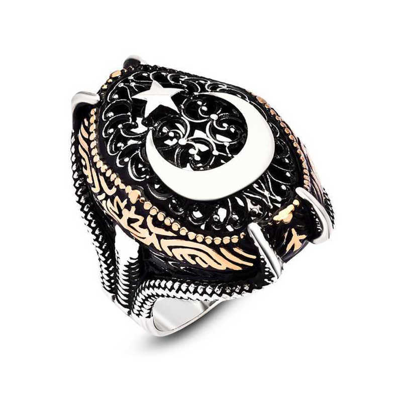 Hilal ve yıldız ya da ay-yıldız; hilal ve hilalin açık ucunda yer alan bir yıldız şeklinden oluşan antik semboldür. Bu sembolün kullanıldığı bayraklara çoğunlukla Akdeniz bölgesi civarında, Orta Doğu ve Orta Asya'da rastlanır. Günümüzde çoğunlukla İslam ülkelerinin bayraklarında kullanılan bir sembol olarak bilinmektedir. Ay- Yıldız simgesi, Türk Bayrağı dahil bir çok bayrakta yer almaktadır. Ay ya da Hilâl, İslâm dini ile özdeşleşmesine rağmen, İslâm öncesi dönemlerde de kullanılmış; Ay- Yıldız ve Güneş motifleri Amerika, Avrupa, Anadolu, Ortadoğu ve Orta Asya panteonunda tarih boyunca yer almıştır. Orta Asya’da İÖ. 5 000’lere ait kaya resimlerinden başlayıp daha sonraki şaman davullarında da benzer şekilde tasvir edilen Ay- Yıldız ve Güneş motifleri, Asyalı Türk- Moğol halklarının evren tasarımı hakkında bilgiler sunar. Fakat Ay ile Yıldız’ın birlikte tasvir edildiği ilk belgeler Mezopotamya’da bugünkü Güney Irak’taki Sümer şehirlerinde ortaya çıkmıştır. Gümüş ay yıldız pençe erkek yüzük modeli severek kullanabileceğiniz ve sevdiklerinize armağan edebileceğiniz bir çok şık bir aksesuardır. Ay yıldız pençe erkek yüzük modeli 925 ayar gümüş kullanılarak imal edilmiştir. Üzerine oksit kaplama yapılmıştır. Oksit kaplama yapılan gümüş ay yıldız erkek yüzük modelleri eskitme bir görünüme kavuşur. Bu yüzükte olduğu gibi tüm gümüş erkek yüzük modelleri tamamen el emeği ile üretilmiştir. Gümüş ve değerli taşlar nedeniyle belirtilen ortalama ürün ağırlığında ± %10 sapma olabilmektedir.
