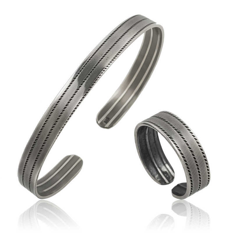 Gümüş Çizgi Desenli Bileklik Ve Yüzük Set
