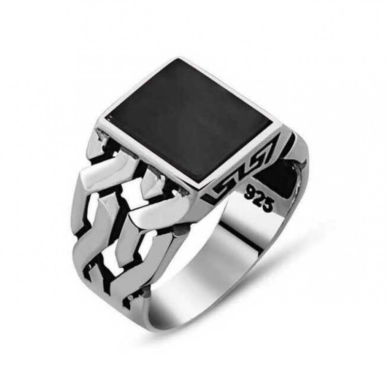 Gümüş Siyah Taşlı Erkek Yüzük