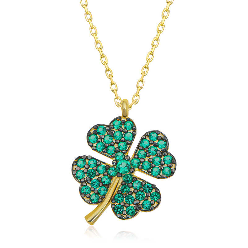 Yıllardır dört yapraklı yoncanın şans getirdiğine inanılınır ve bir çok insan sadece bu sebepten yonca figürleri kullanmaktadır. Yoncanın şans getirmesi dışında onlarca yararı vardır. Yonca kolyesini taşıyacak bir kişi şansını ve şifasınıda yanında taşıyacak demektir. Dört yapraklı yonca bütün kültürlerde iyi şansın sembolü olarak kabul edilir. Birinci yaprak ümidi, ikincisi imanı, üçüncüsü aşkı, dördüncü yaprak ise şansı simgeler. Tabiatta çok nadir bulunan bu dördüncü yapraktır. Gümüş yeşil zirkon taşlarla süslenmiş dört yapraklı yonca kadın kolye, severek kullanabileceğiniz ve sevdiklerinize hediye edebileceğiniz harika bir modeldir. Gümüş yeşil taşlı kadın kolye 925 ayar gümüşten imal edilmiştir. Gümüş kolye üzerinde gold kaplama yapılmıştır. Gold kaplama yapılan gümüş kadın kolyeler parlaklığını uzun süre muhafaza eder, oksitlenmesi gecikir. Gümüş olan zincir boyu ortalama 45 cm"dir. Tüm gümüş kadın kolye modellerimizde olduğu gibi gümüş dört yapraklı yonca kadın kolye de el emeği ile üretilmiştir. Gümüş ve değerli taşlar nedeniyle ürün ağırlığında ± %10 sapma olabilmektedir.