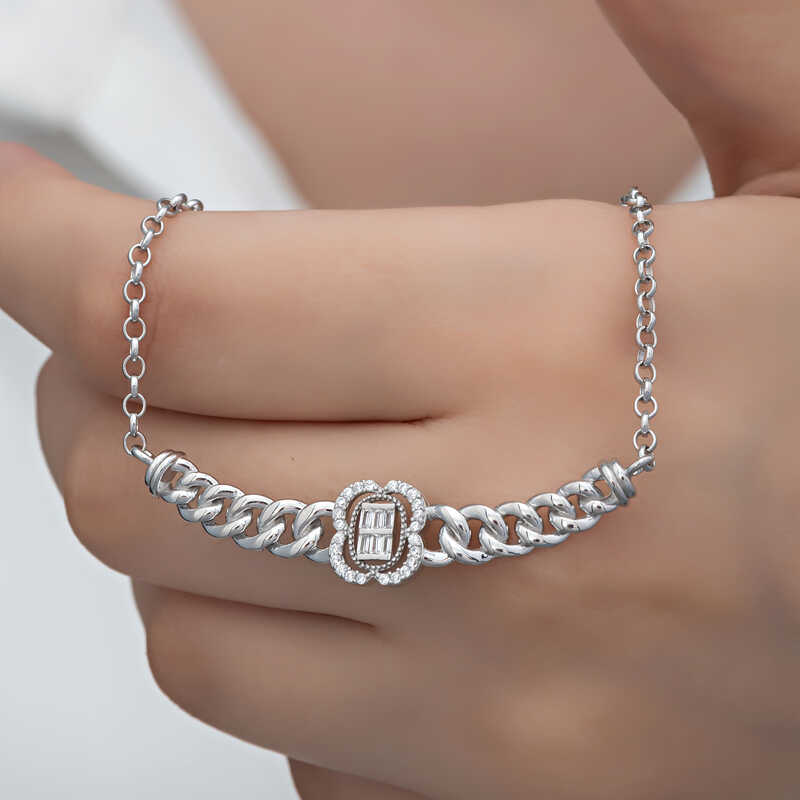 Gümüş Gurmet Zincirli Baget Taşlı Kadın Kolye