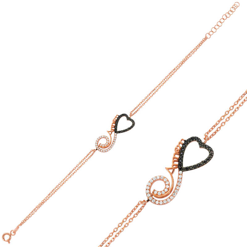 Annenize sonsuz sevginizi ifade etmenin en güzel ve en anlamlı yollarından biri sonsuzluk bilekliğidir. Şık tasarımıyla bu özel bileklik ile annenize olan sonsuz sevginizi ifade edebilir, sonsuza kadar birlikte olacağınız mesajı verebilirsiniz. Sevilen ve şıklığından ödün vermeyen bu modeli; doğum günü hediyesi, anneler günü hediyesi veya özel günlerde tercih edebilirsiniz. Gümüş kalpli sonsuzluk annem bayan bileklik, 925 ayar gümüşten imal edilmiştir. Üzerinde bulunan taşlar zirkondur. Gümüş üzerine rose kaplama yapılmıştır. Rose kaplama yapılan gümüş bayan bileklikler parlaklığını uzun süre muhafaza eder ve gümüşe pembe rengi verir. Tüm gümüş bayan bilekliklerde olduğu gibi bu gümüş kalpli sonsuzluk annem bayan bileklik modeli de tamamı el emeği ile üretilmiştir. Gümüş ve değerli taşlar nedeniyle belirtilen ortalama ürün ağırlığında ± %10 sapma olabilmektedir.