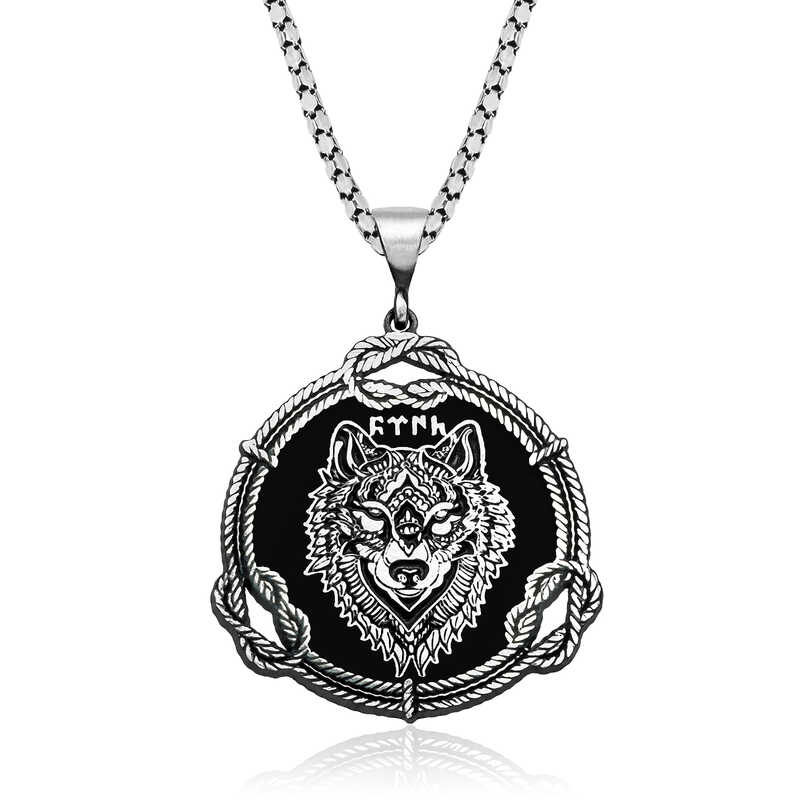 Gümüş Kurt Motifli Göktürkçe Türk Yazılı Kolye