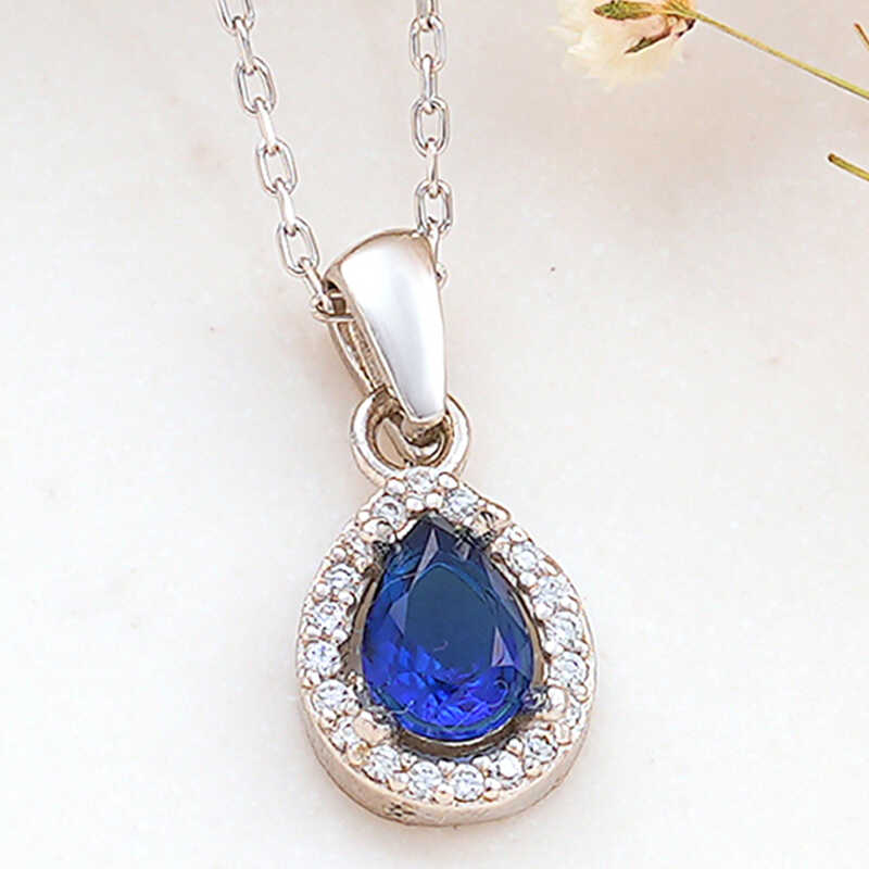 Gümüş Mavi Damla Zirkon Taşlı Kadın Kolye
