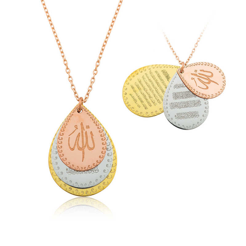 Etiketler: Gümüş Rose Ayetel Kürsi, Nazar Ayeti ve Allah Yazılı Bayan Kolye