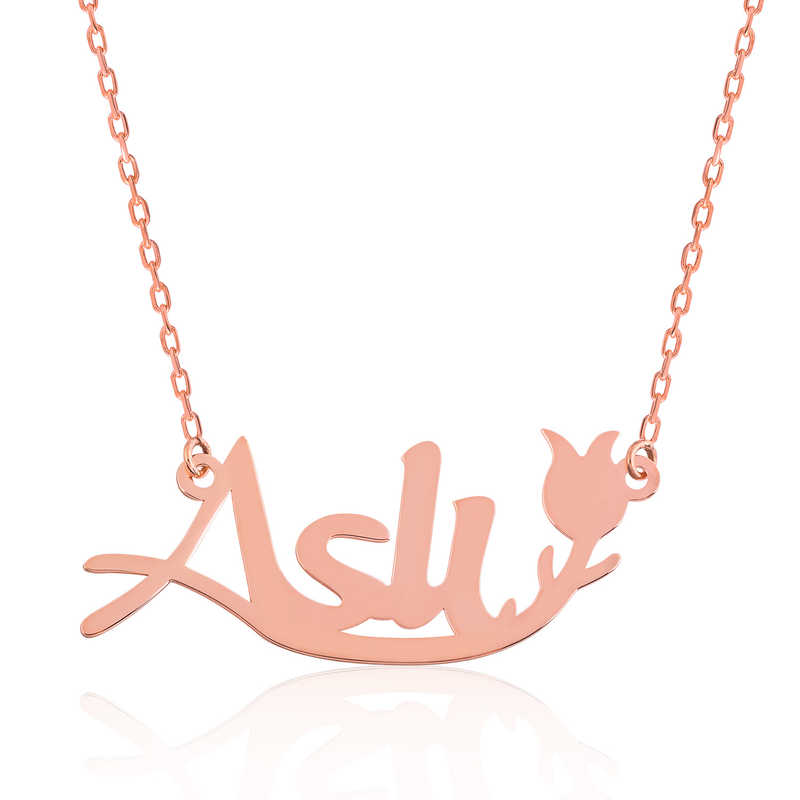 Gümüş Rose Kişiye Özel Lale Desenli İsimli Bayan Kolye