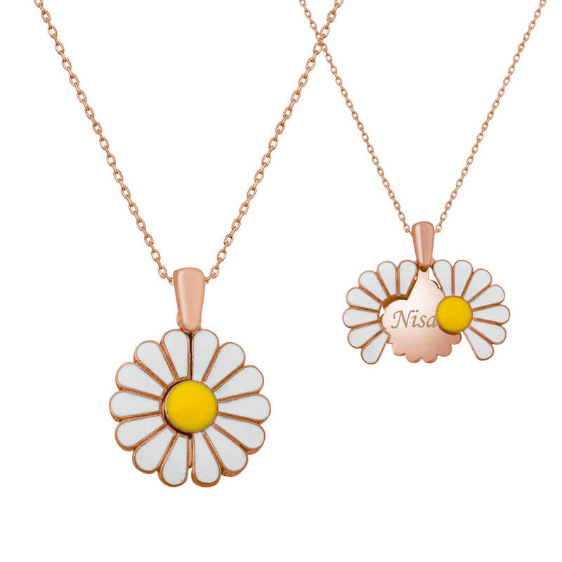 Gümüş Rose Kişiye Özel Papatya Kolye